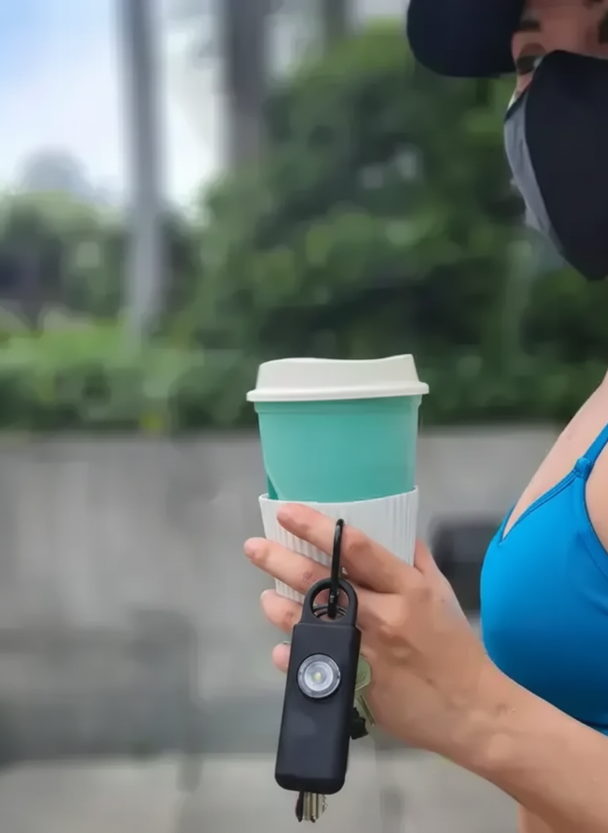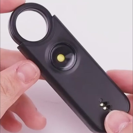 Jednym ruchem aktywujesz donośny dźwięk o natężeniu 135 dB i błyskowe światło ostrzegawcze. Alarm natychmiast zwróci uwagę otoczenia, zdezorientuje napastnika i da Ci czas na reakcję.